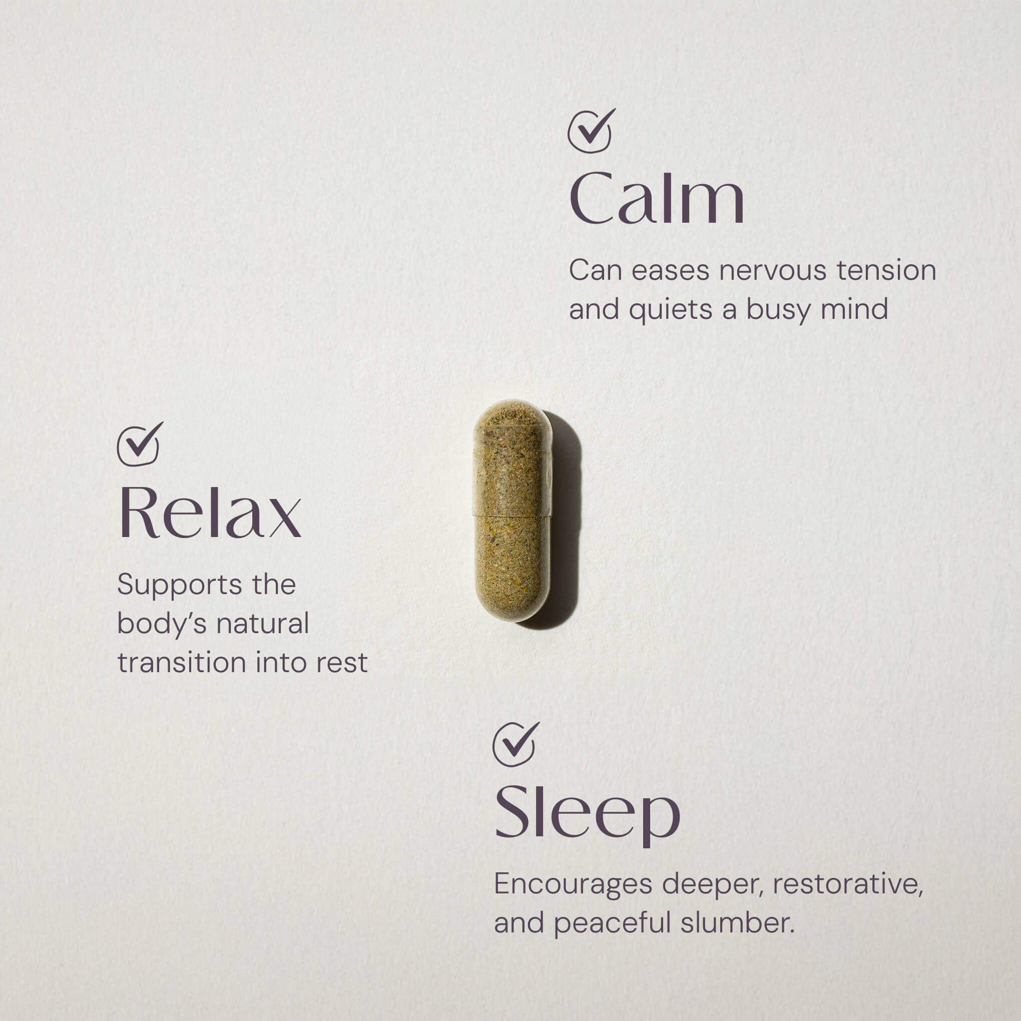 This capsule is for you if you are experiencing a period of high stress which is effecting your sleep. It can support you to re-establish your sleep patterns alongside other wellness practices to promote relaxation.